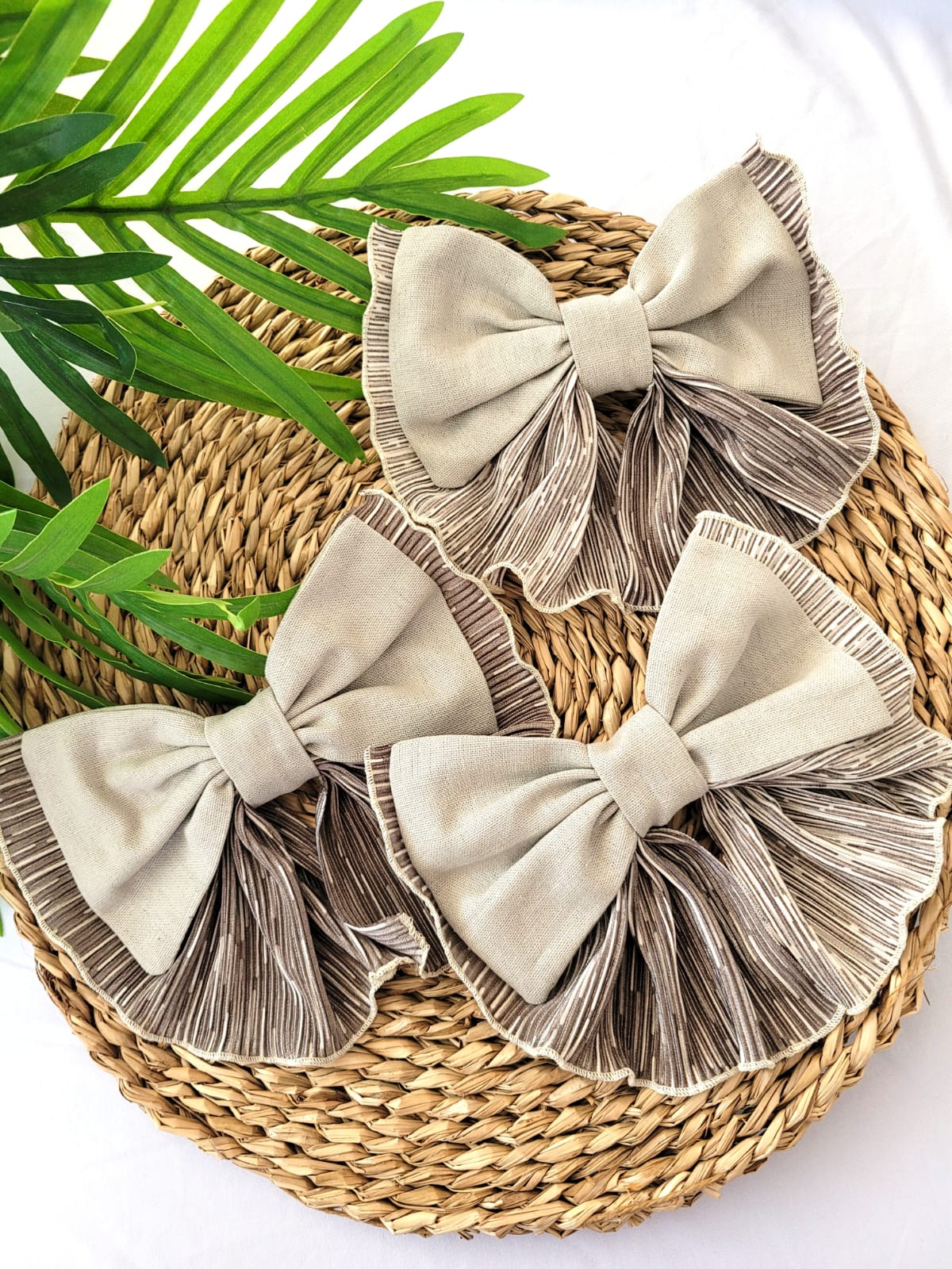 Descubre la elegancia del Lazo Sofía, confeccionado con lino de alta calidad y delicada popelina plisada. Su diseño incluye un amarre de traba de 10 cm, que aporta un toque de sofisticación y estilo. Cada lazo es hecho a mano en Chile, garantizando un producto único y lleno de carácter.